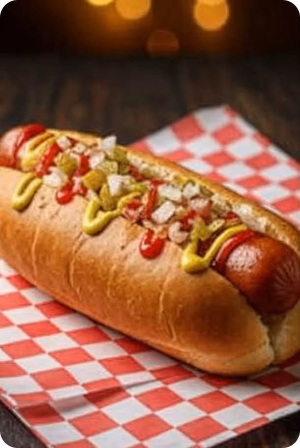 Ingrédients (4 pers) : 4 pains briochés, 4 saucisses de qualité, oignons frits, moutarde douce, ketchup, pickles, beurre.